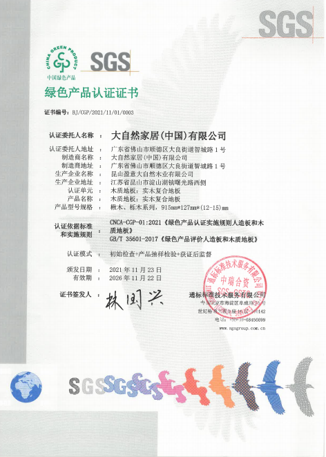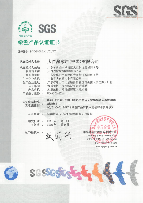 綠色建材下鄉(xiāng)對于入選產(chǎn)品有著嚴(yán)苛的審核標(biāo)準(zhǔn),入選產(chǎn)品必須是在全生命周期內(nèi)可減少對天然資源消耗和減輕對生態(tài)環(huán)境影響,具有“節(jié)能、減排、安全、便利和可循環(huán)”特征的建材產(chǎn)品。2021年,大自然強(qiáng)化地板、實(shí)木復(fù)合地板憑借環(huán)保基材和環(huán)保工藝技術(shù),經(jīng)過專業(yè)檢測機(jī)構(gòu)的層層檢測與認(rèn)證,獲得了綠色產(chǎn)品認(rèn)證證書。該證書是證明企業(yè)的產(chǎn)品在全生命周期中均符合綠色發(fā)展理念,也是綠色建材下鄉(xiāng)的重要通行證。