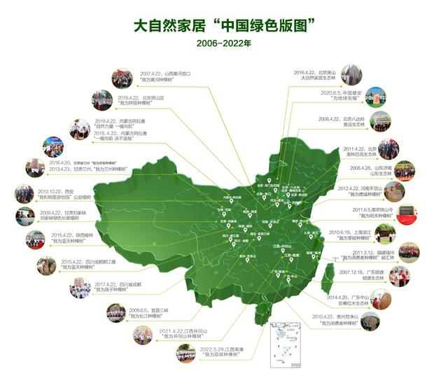 在綠色生態(tài)上,大自然家居一直在踐行綠色發(fā)展之路,遵守“砍一棵樹,種十棵樹”的承諾,自2006年起,大自然家居與中國綠化基金會(huì)合作,每年開展公益植樹活動(dòng),在國內(nèi)外建成了27片公益生態(tài)林,植樹逾80萬棵,植樹面積超過102萬平方米。使林業(yè)生態(tài)系統(tǒng)功能不斷完善,森林固碳釋氧、保持水土、調(diào)節(jié)氣候、保護(hù)生物多樣性等生態(tài)功能不斷增強(qiáng)。