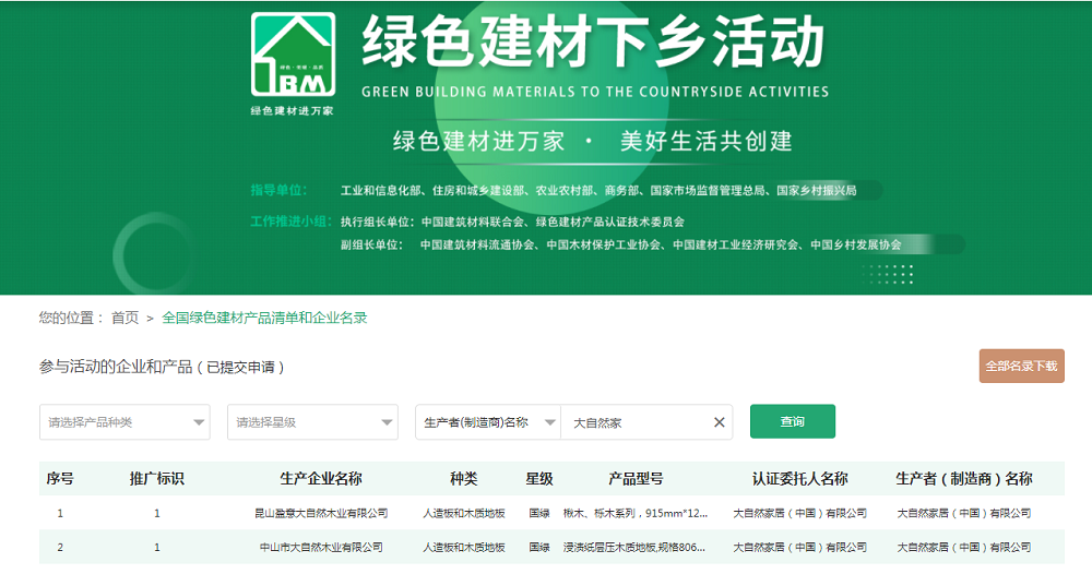 據(jù)悉,2022年6月大自然家居已入選由工信部公布的全國綠色建材產(chǎn)品清單和企業(yè)名錄,助力國家加快綠色建材產(chǎn)品推廣。此次入選《佛山市綠色建材目錄》,更是進(jìn)一步推動(dòng)大自然家居進(jìn)入更廣闊的下沉市場,讓更多用戶享受更高品質(zhì)的綠色生活。