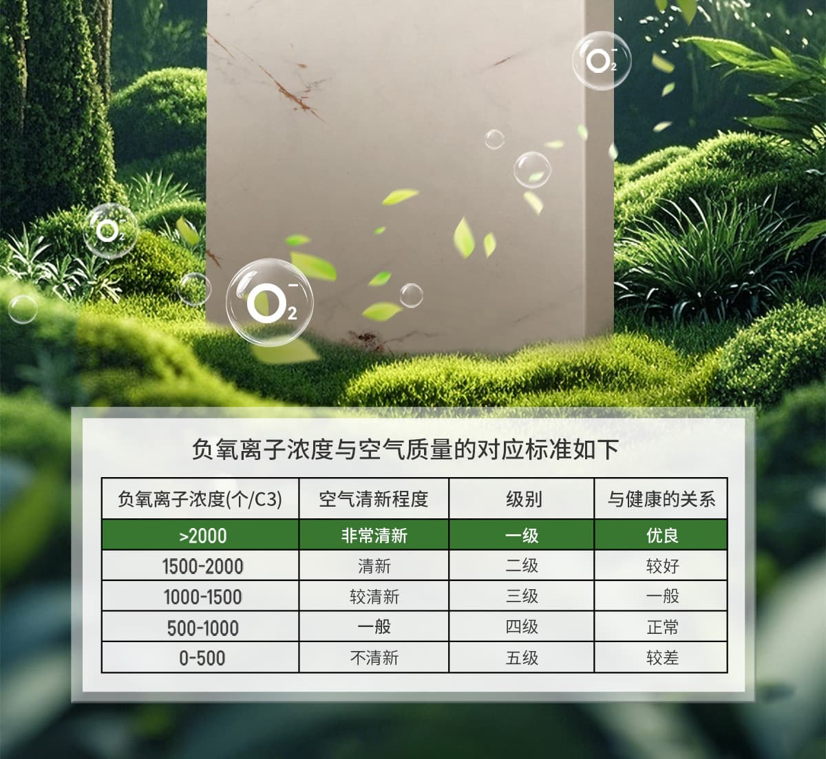 | 誘發空氣負離子量 | 比基礎環境提高10倍+ |