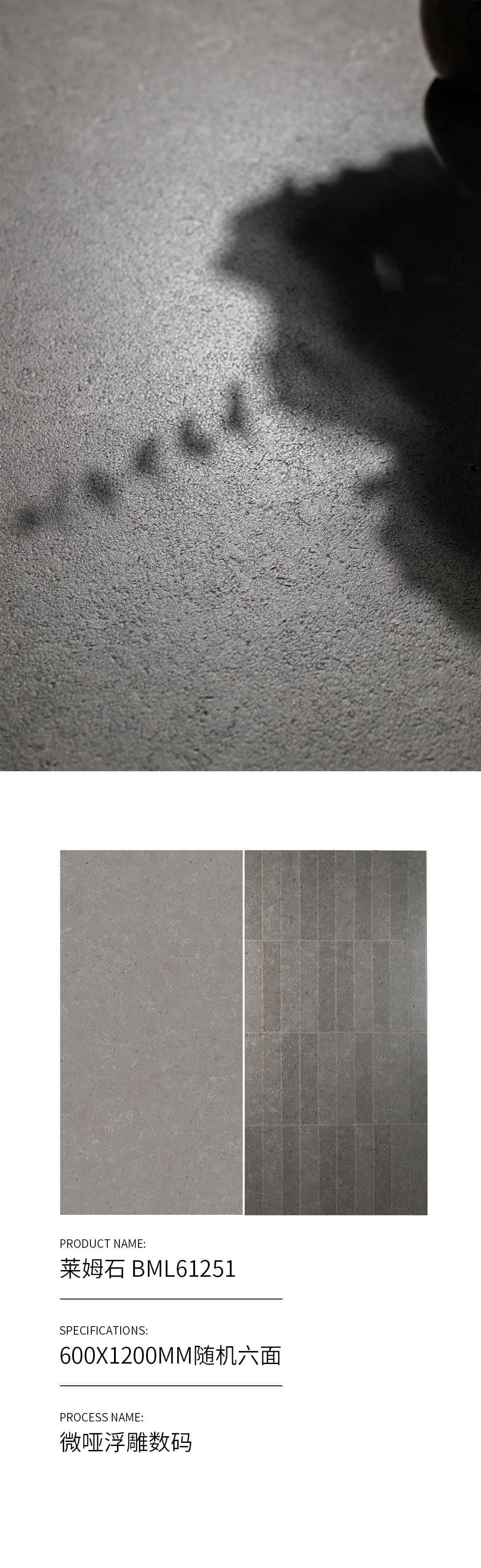 | 產(chǎn)品特性 | 表面柔和,防污效果強,防滑R10指標高,抗折強度好 |